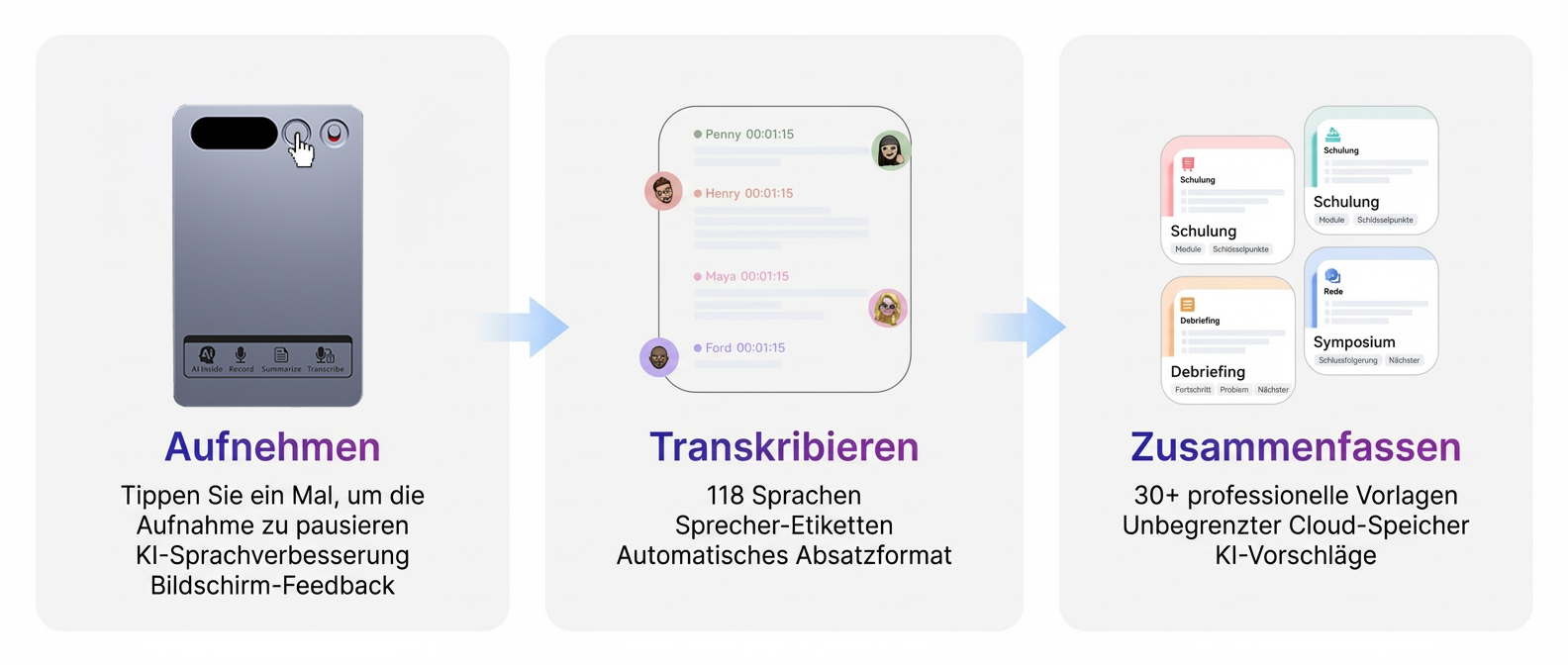 Zeichnet Umgebungsgeräusche auf – ideal für persönliche Gespräche.