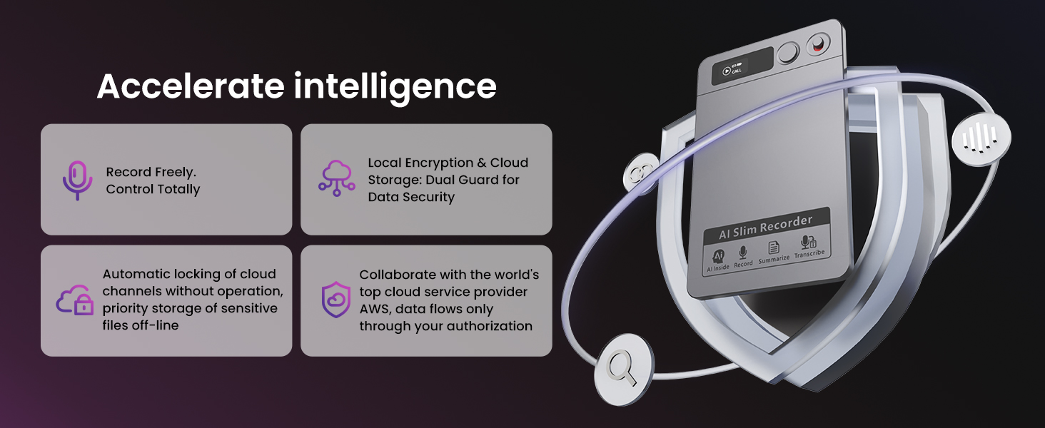 - 64‑GB‑Speicher & sichere Cloud‑Sync: Speichern Sie lokal über 500 Stunden Audio. Militärisch verschlüsseltes Cloud‑Backup schützt Ihre Daten und macht sie weltweit verfügbar.